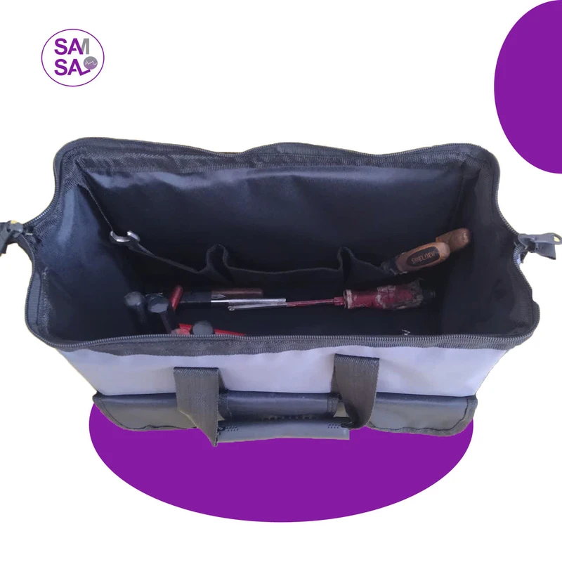 4. 🧰 کیف ابزار ۱۲ جیب برای نگهداری انواع ابزار دستی مانند پیچگوشتی، آچار، انبردست و متر طراحی شده است.