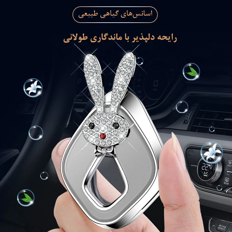 خوشبو کننده کارلوکس طرح خرگوش، یک انتخابی جذاب برای کسانی است که به ظاهر خودرو و بوی مطبوع داخل آن اهمیت میدهند. بدنهی محصول از جنس ABS مقاوم است که با الکتروپلیت براق روکش شده تا زیبایی آن دو چندان شود. این خوشبوکننده با طراحی زیبای خود، نه تنها فضای خودرو را خوشبو میکند، بلکه به عنوان یک دکوری شیک و متفاوت نیز میتواند در نظر گرفته شود. این محصول بر روی دریچه تهویه خودرو نصب میشود و بدون نیاز به باتری و تنها به واسطه جریان هوای خروجی از دریچه خودرو به صورت یکنواخت و فعال رایحه را در تمام فضای خودرو پخش میکند. همچنین روی محصول حفرههایی جهت پخش ملایم رایحه در حالت خاموش بودن تهویه خودرو تعبیه شده است. پایه محصول دارای روکش سیلیکونی جهت عدم آسیب به رنگ دریچه تهویه خودرو است و نیازی به نگرانی جهت آسیب به دریچه تهویه نیست. مخزن این محصول ظرفیت 8 میلیلیتر دارد که با رایحه گلهای بهاریی پر شده است و قابل شارژ با عطر دلخواه خودتان است. به همراه محصول یه فیلتر جهت انتقال عطر از درون مخزن به بیرون برای پخش بهتر رایجه قرار دارد.