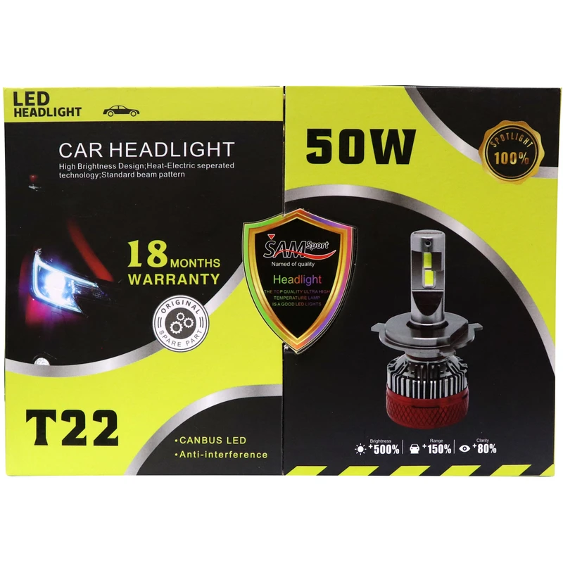 هدلایت لامپ خودرو سام مدل T22 پایه H۷ بسته دو عددی