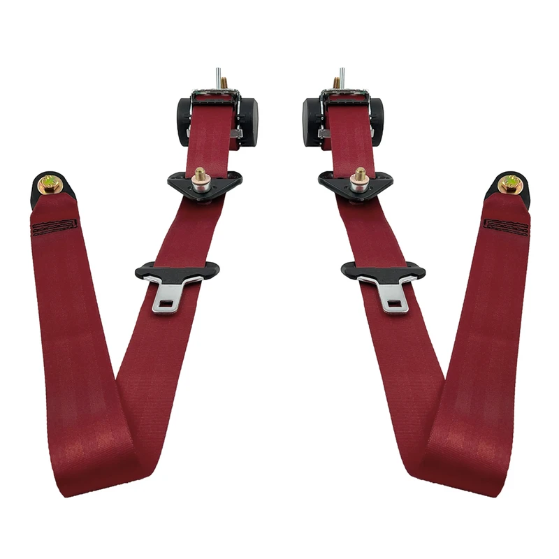 2 عدد کمربند ایمنی مناسب سرنشینان جلو چپ (راننده) و جلو راست (کمک راننده) خودرو نیسان پاترول با نوار زرشکی-