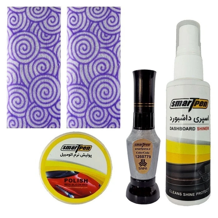 2) پولیش نرم 30gr که جهت تمیز کردن و رسیدن به رنگ اصلی خودروی شما،قبل از استفاده از قلم خشگیر توصیه میشود.(بعد از خشگیری نیازی به استفاده از پولیش نمی باشد.)4)دو عدد دستمال تنظیف که جهت هریک از موارد پولیش کاری و اسپری داشبورد میتوانید از آنها استفاده نمایید.