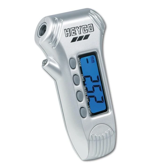 ابزار فوق محصولی بی نظیر از شرکت هیکو آلمان می باشد که مناسب مکانیک ها و کسانی است که به لاستیک های خودرو خود اهمیت می دهند . این گیج با عملکرد سه گانه خود سبب شده است تا خیالتان از سلامت و امنیت لاستیک های خودروتان راحت شود . با استفاده از این ابزار می توانید فشار باد لاستیک را در چهار واحد بار ، Psi ، Kpa و Kg/cm2 اندازه بگیرید که حداکثر این مقدار در واحد Psi عدد 100 و در واحد بار ، 7 می باشد و دقت آن نیز 1 درصد می باشد . یکی دیگر از قابلیت های ویژه این ابزار امکان اندازه گیری عمق عاج لاستیک می باشد که یکی از فاکتورهای مهم در سلامت لاستیک های خودرو می باشد . با استفاده از دسته ای که در پشت گیج تعبیه شده است می توانید زبانه اندازه گیری عاج را تنظیم کنید تا عدد دقیق بدست آید که در دو واحد میلی متر و اینچ و تا عمق حداکثر 22 میلی متر قابل انجام است . در کنار دستکاه و همچنین روی صفحه ال سی دی چراغی آبی رنگ تعبیه شده تا در شب بتوانید از آن ها استفاده نمایید و خللی در کار ایجاد نشود .